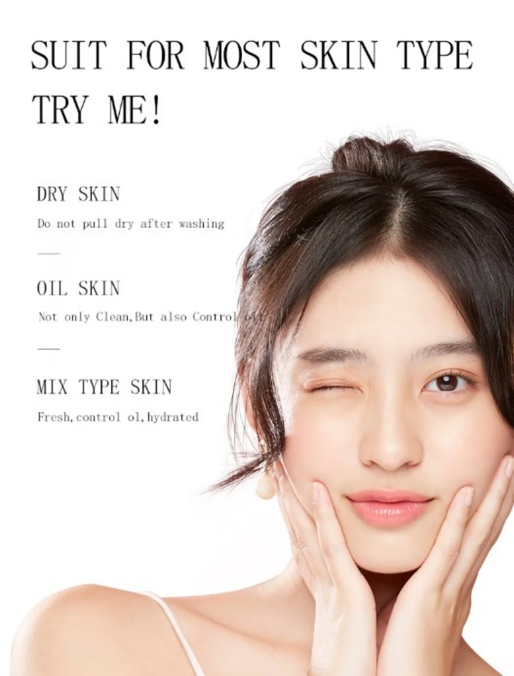 3.Cleanse dirt on skin and pores with smooth and dense foam, moisturizing and non-irritating, cleanse without dry, tight feeling, suitable for all skin types, especially combination skin with oily and dry patches.